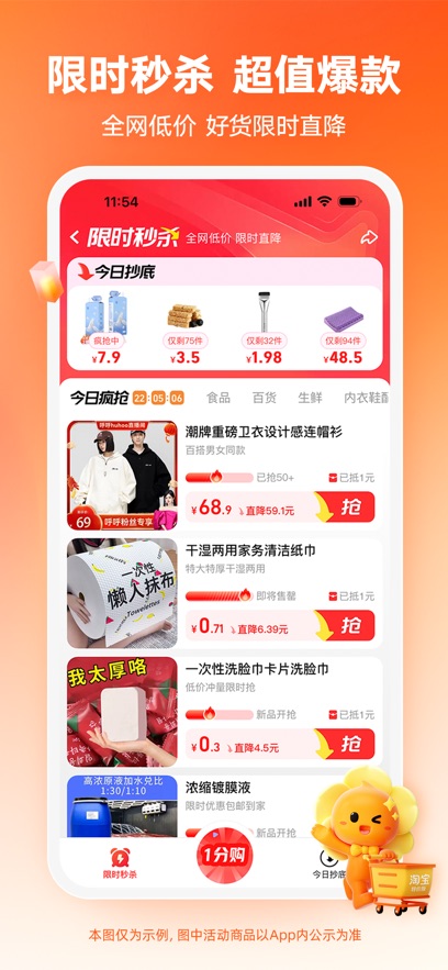 限时抢购:每日定时推出限时折扣,价格更低,带给您紧张刺激的购物体验。
