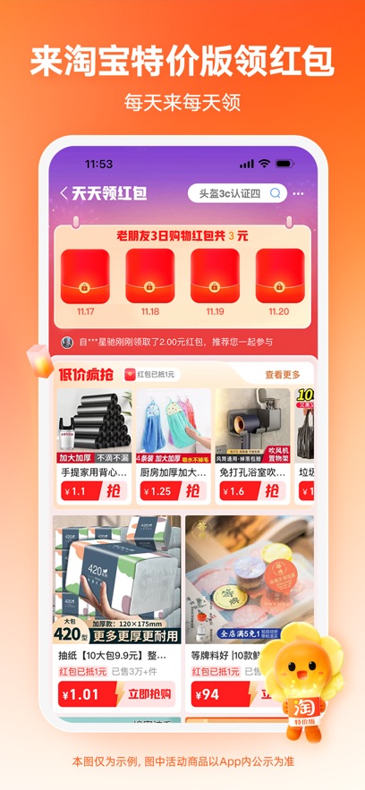 近期更新:上淘宝特价版,天天领红包,超值好货5折起