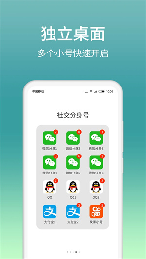 3、支持同一台手机同时登陆多个微信账号,工作生活两不误。