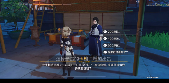 2、我们跟解翠行老板对话,就要求玩家开始赌石头。