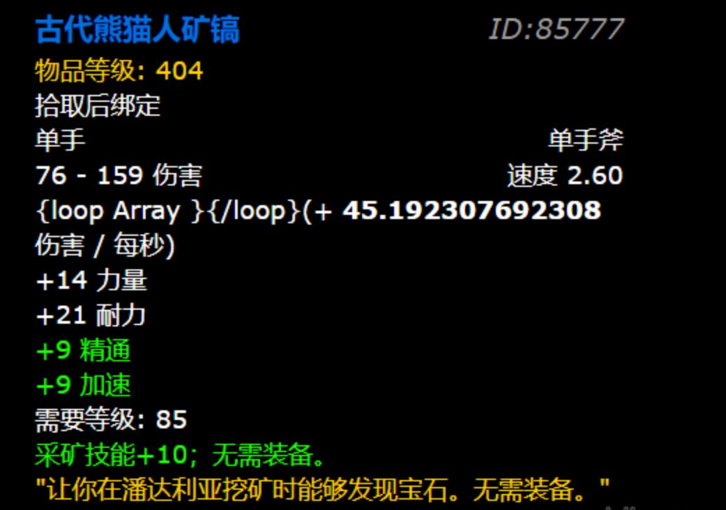 三、wow古代熊猫人矿镐属性