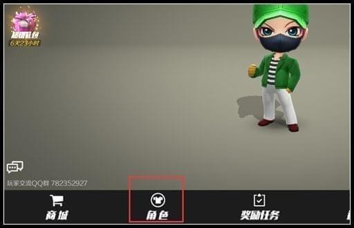 1、在大厅中,点击角色按钮,进入角色界面;