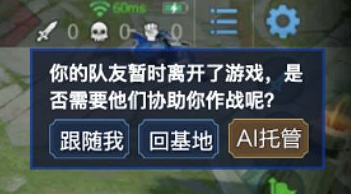 2、ai代打设置方法:玩家在遭遇挂机后也拥有更多的选择——跟随我/回基地/AI托管;