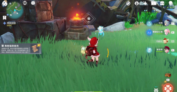 1、根据画片指引到达「锈舵」,熄灭周边的所有火盆(四个)。 在游戏地图中,根据画片指引前往「锈舵」地区。在那里,你会发现四个火盆分布在周围。使用角色的特殊技能或元素攻击,将这四个火盆全部熄灭。